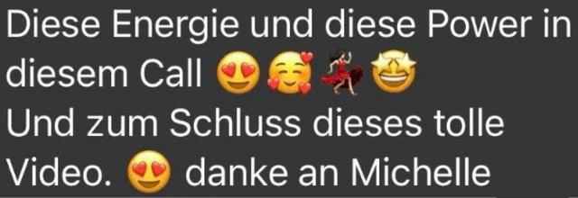In den intensiven 7 Wochen des Programms erwartet dich jeden Montag um 19:00 Uhr ein Q&A-Call. Diese regelmäßigen Termine bieten dir die einzigartige Gelegenheit, direkt mit uns – Renata, Michelle und Sylvia – sowie allen anderen Frauen in der Community in Kontakt zu treten, Fragen zu stellen und tiefer in die Materie einzutauchen. Es ist, als würdest du jede Woche einen vertrauten Austausch mit uns und einer Gruppe gleichgesinnter Frauen haben, die alle dasselbe Ziel verfolgen: Wachstum und Transformation.