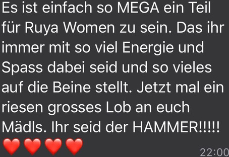 Heute stehen wir hier, nicht nur als Zeugnisse unserer eigenen Transformation, sondern als lebendige Beweise dafür, dass jeder Schatten letztlich das Licht nicht nur verbirgt, sondern auch definiert. Mit „RUYA.WOMEN“ öffnen wir einen Raum, in dem jede Frau, die sich uns anschließt, ermutigt wird, aus dem Hintergrund zu treten und ihr eigenes Licht hell leuchten zu lassen.