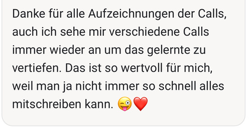Alle Live-Calls werden aufgezeichnet, damit du sie anschauen kannst, wann immer es dir passt. So verpasst du nichts und kannst das Programm flexibel in deinen Alltag integrieren.